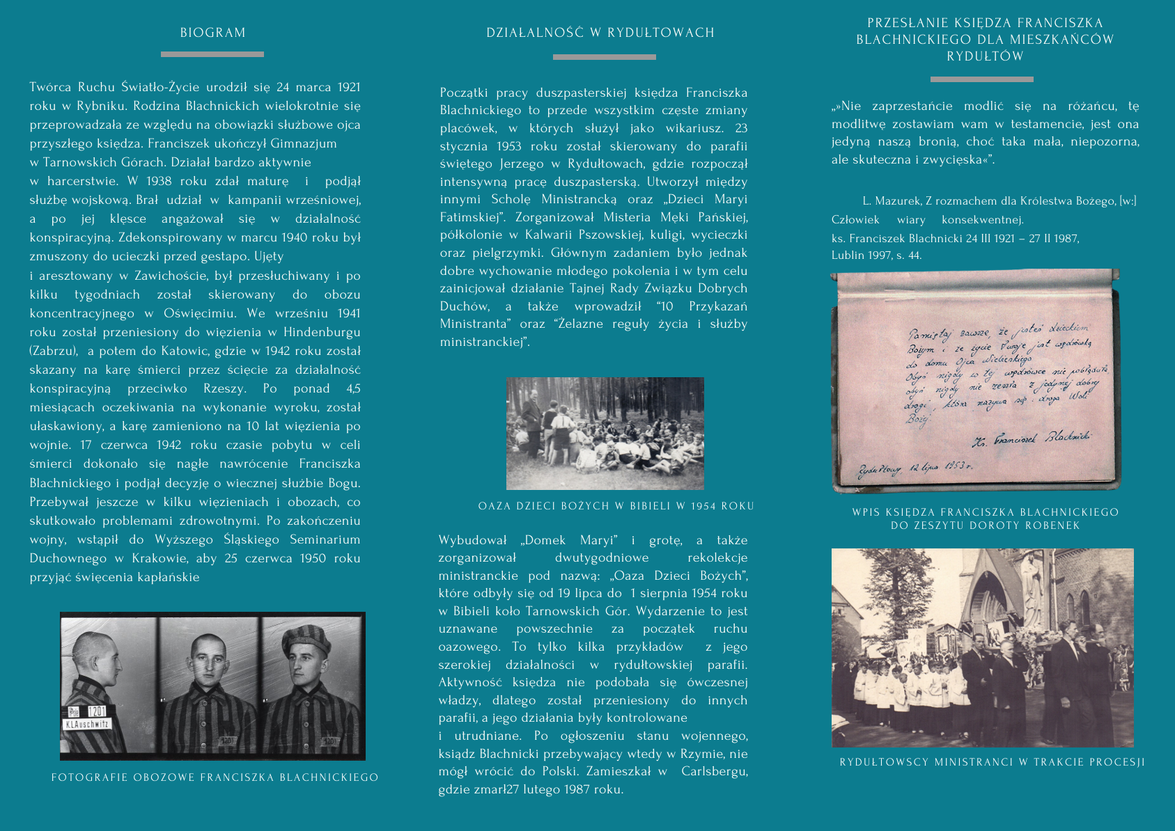 Zachęcamy do pobrania broszury przedstawiającej działalność księdza Blachnickiego w Rydułtowach.