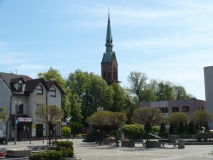 Przy kościele znajduje się dwuramienny krzyż pokutny z 1628 roku, wykonany z piaskowca, będący cennym zabytkiem sakralnym. Kościół św. Jerzego to nie tylko miejsce modlitwy, ale także ważny element historii miasta, związany z jego rozwojem i tożsamością.